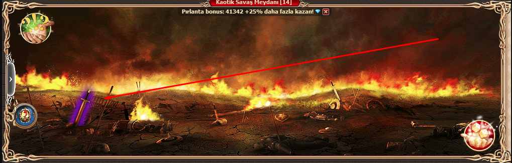 Yukarıdaki efektlerden şansınıza bağlı olarak 1 tanesini kaotik savaşı başlamadan önce bölgedeki kılıca tıklayarak alabilirsiniz.