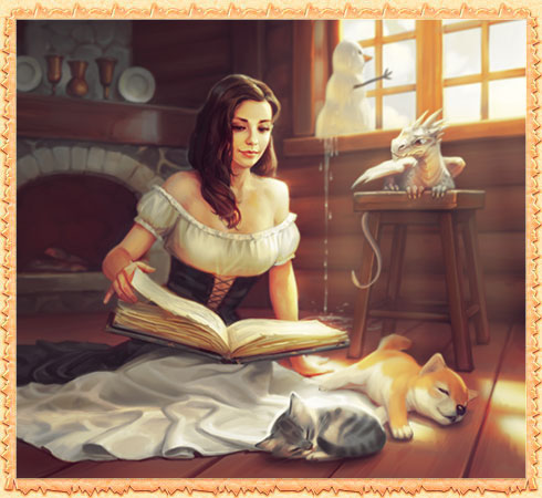 Evcil hayvanlar uykularında tatlı tatlı mırıldanırlar, evler sıcak ve rahattır ve Mirrou'un yumuşak ışığı eski bir cildin sararmış sayfalarına düşer. Bugün için görkemli planlar yok: silahlar kılıflarında kalacak, savaşlar ertelendi, başarılar beklemek zorunda kalacak. Savaşçı olağanüstü bir tatilin ve heyecan verici okumanın tadını çıkarıyor.